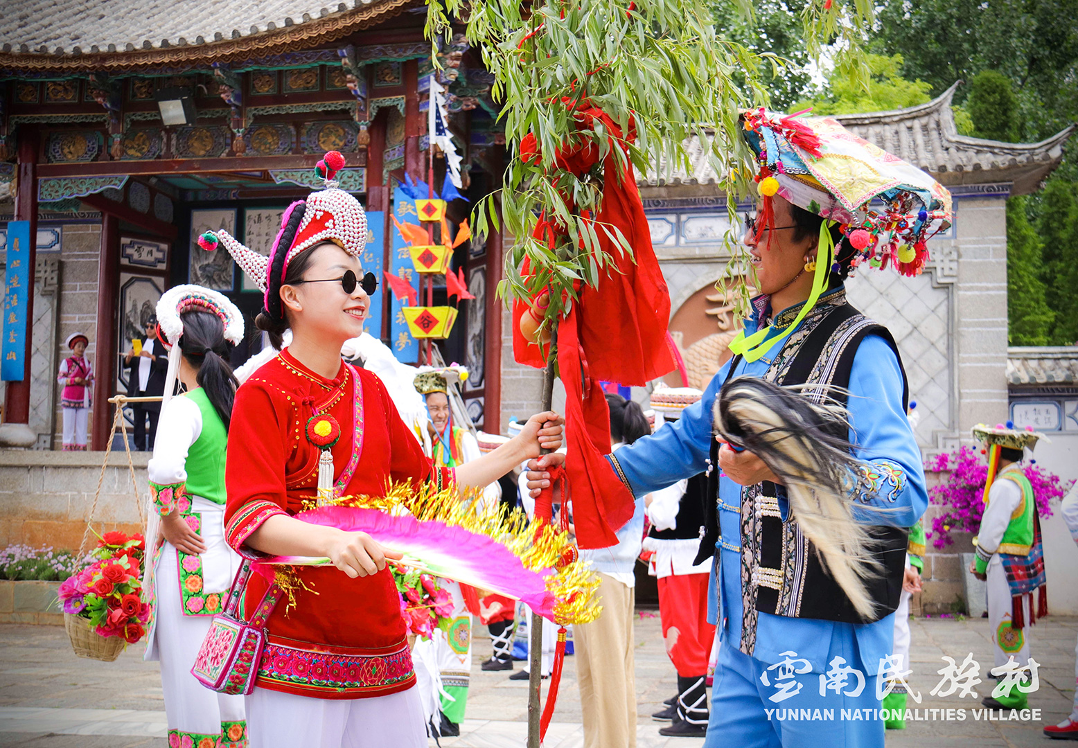 彝族在云南境內(nèi)約471萬人,是省內(nèi)人口最多、分布最廣的少數(shù)民族,主要聚居在金沙江、元江流域和哀牢山、無量山腹地。彝族是一個能歌善舞的民族,民間打歌、跳樂之風盛行,大三弦、跌腳舞久負盛名。火把節(jié)是彝族最具特色的民族節(jié)日。彝族村占地50余畝,三虎浮雕墻與虎頭內(nèi)祖師形象表現(xiàn)了彝族虎鷹文化。太陽歷廣場圖騰柱上有太陽、虎、火和八卦圖形象,周圍環(huán)繞著10個朝向不同的月球造型,外圓周有12生肖石雕。依山而建的“...